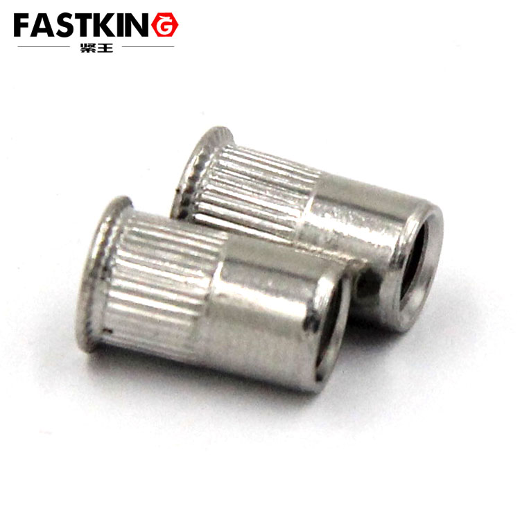 柱體表面的豎條紋設計則進一步優化了精密裝配需求:條紋間距更細密(通常為 0.3-0.5mm),既能在鉚接時增強與安裝孔內壁的咬合力度,防止螺母在震動環境下松脫,又能減少對薄壁材料的擠壓損傷 —— 相較于普通光面鉚螺母,其對鋁板、塑料板等易變形材料的適配性提升 40% 以上。此外,部分小沉頭型號還采用 “縮口式柱體” 設計,安裝時可自動校準孔位偏差,容錯范圍達 ±0.15mm,降低了精密構件的打孔精度要求。