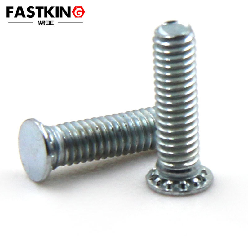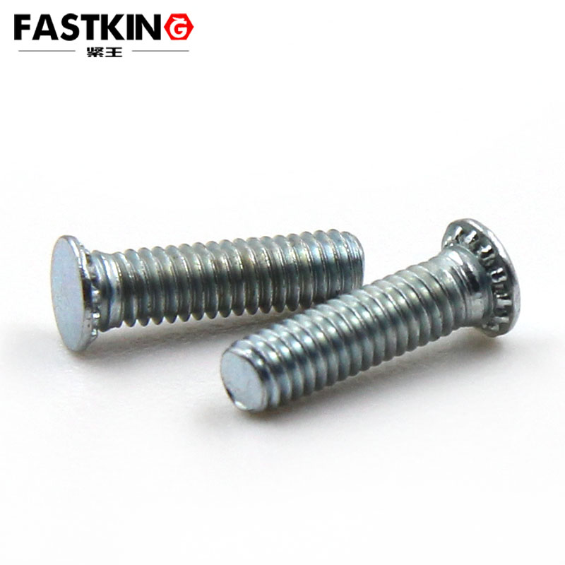 與同類緊固元件相比,壓鉚螺釘?shù)母偁巸?yōu)勢十分顯著。相較于普通自攻螺釘,壓鉚螺釘無需依賴工件自身螺紋,適配更廣泛的材質(zhì)(如軟塑料、薄鋁合金),且抗松動(dòng)能力更強(qiáng),不會(huì)因頻繁振動(dòng)出現(xiàn)滑牙;相較于焊接螺釘,壓鉚螺釘無需高溫作業(yè),避免了焊接導(dǎo)致的工件變形、氧化,且裝配效率更高,無需專業(yè)焊工,符合現(xiàn)代工業(yè)的綠色生產(chǎn)與精益制造要求;相較于拉鉚螺釘,壓鉚螺釘安裝時(shí)無需額外工具(如拉鉚槍),僅需壓鉚機(jī)即可完成,且連接后螺釘頭部更平整,適配對外觀要求高的場景。