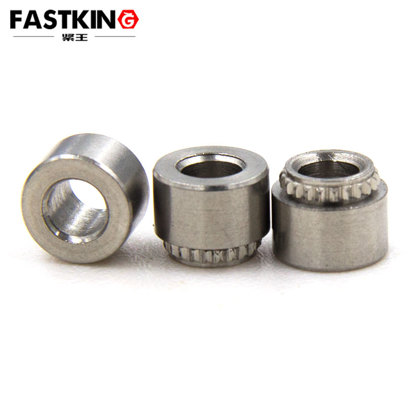 雖然不銹鋼漲鉚螺母 - 無牙本身無內牙,但需與外部螺栓配合使用,因此適配的螺紋規格決定了螺母的內徑尺寸。常見適配的公制螺紋規格有 M3、M4、M5、M6、M8、M10、M12 等。以 M4 螺紋為例,適配的漲鉚螺母內徑應略大于 M4 螺栓的外徑,一般控制在 4.2 - 4.3mm,公差范圍保持在 ±0.05mm,以確保螺栓能夠順利旋入,同時又能保證連接的緊密性,避免因間隙過大導致松動,或間隙過小造成安裝困難甚至損壞螺紋。